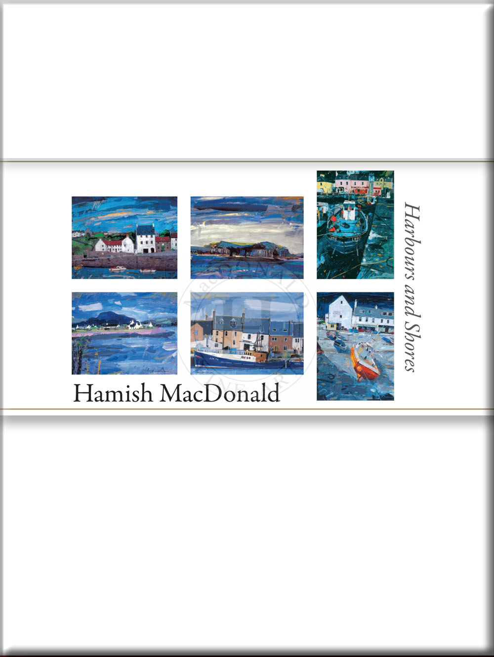Six cards, one of each image, blank inside,with envelopes. White box.