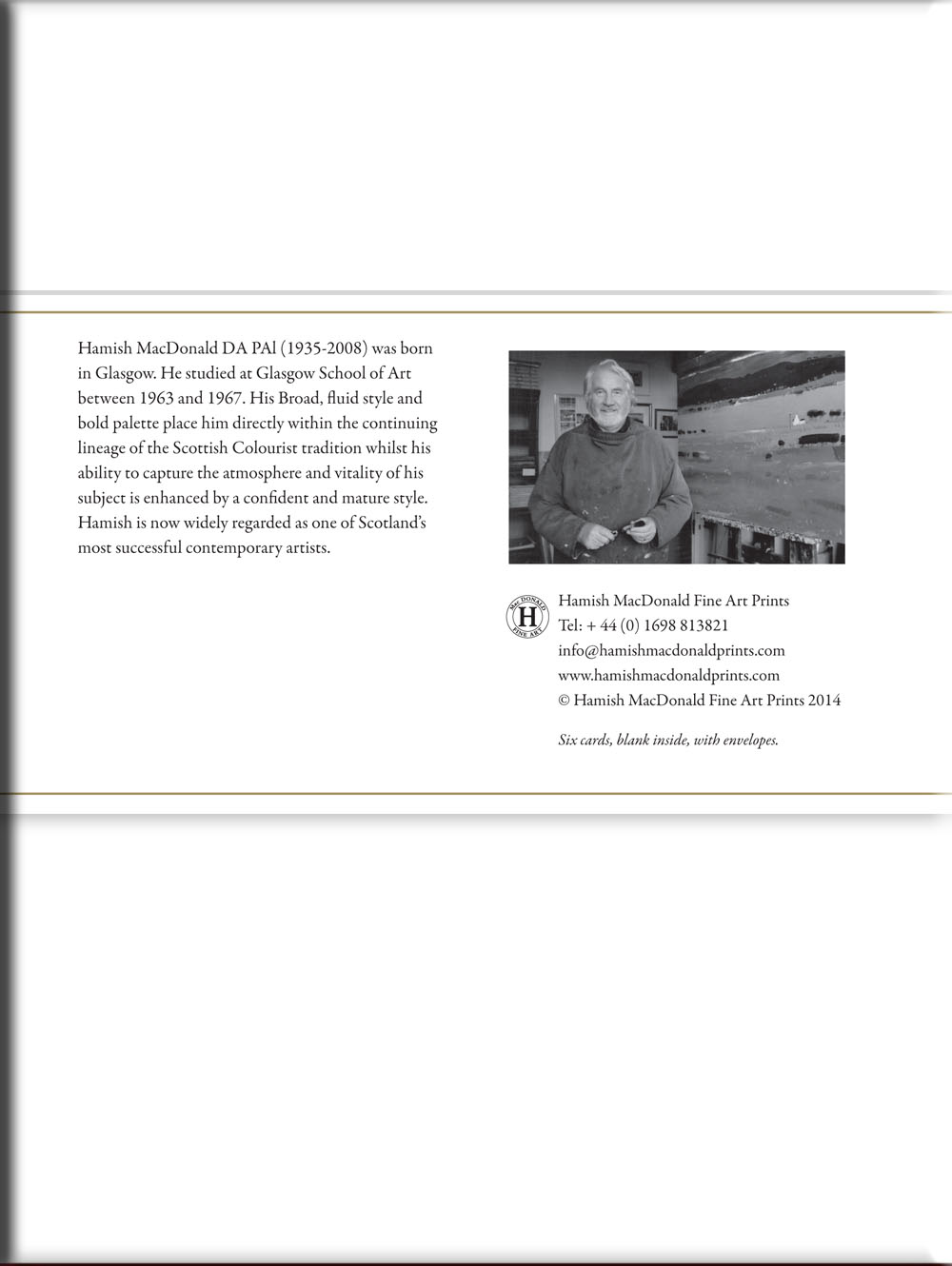Six cards, one of each image, blank inside,with envelopes, white box.