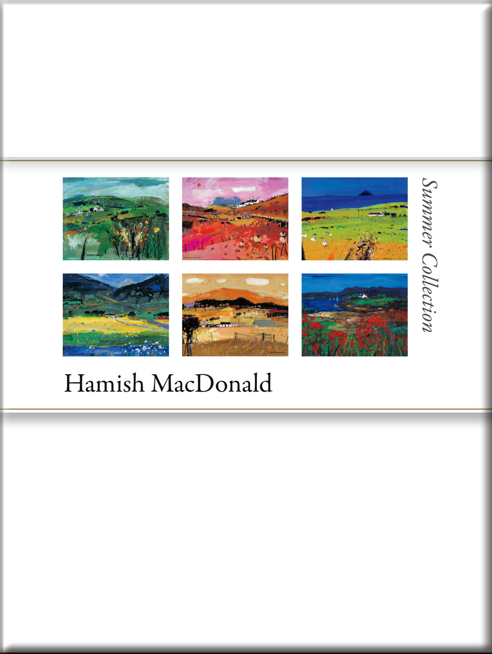 6 cards, one of each image, blank inside,with envelopes, white box.